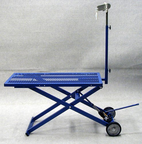 Sydell Hydraulic Sheep Stand #780?This "Cadillac" of sheep stands provides practical solutions to your fitting needs. Walk your sheep or goat up onto the stand and raise the deck to the desired working height. The 20" x 48" deck raises from 3" to 27" with ease. Cast aluminum wheels for easy transport. Comes complete with headpiece and straight neck reach. The neck reach receiver extends in and out, allowing for adjustments.
