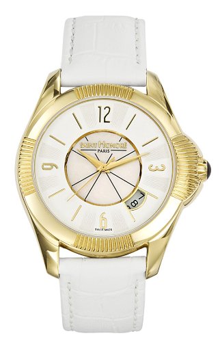FeaturesGold pvd coated case with textured finishing around bezelTwo-tone mother-of-pearl and white dialBig date windowSecond-hand featureGenuine white leather band Saint Honore Women's 766060 3BYHT Coloseo Gold PVD Mother-Of-Pearl Leather Watch?