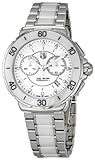 | ✚✚✚ TAG Heuer Women's CAH1211.BA0863 Formula One Chronograph Watch Stainless steel case with a stainless steel with white ceramic center links. Stationary rotating white ceramic bezel. White ceramic dial with luminous hands and diamond hour markers. Minute markers around the outer rim. Luminescent hands. Date display between the 4 and 5 o'clock positions. Two - 60 seconds and 30 minutes. Quartz movement. Scratch resistant sapphire crystal. Screw down crown. Solid case back. Case diameter: 41 mm. Case thickness: 11.8 mm.deployment clasp with double push button safety. Water resistant at 200 meters / 660 feet. Functions: hours, minutes, seconds, calendar, chronograph. Tag Heuer Formula One Ceramic Ladies Watch CAH1211BA0863.
