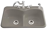| ✚✚✚ KOHLER K-6626-4-K4 Langlade Smart Divide Self-Rimming Kitchen Sink, Cashmere Finish/Color:Cashmere, Faucet Hole Spacing:3 Holes - 4', Accessory Hole:1 hole on right Langlade Smart Divide self-rimming kitchen sink.The Smart Divide low profile basin divider offers ease of handling large items within the sink. KOHLER Cast Iron 33' x 22' Basin depth: 9' Double equal basin sink Self-rimming installation Note: Faucet and drain not included.