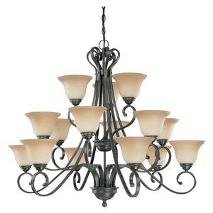 Nuvo 60/2745 3 Tier 15 Light Chandelier with Champagne Linen Glass?3 tier 15 light chandelier with champagne linen glass. (15) 60-Watt A19 medium base bulbs not included.